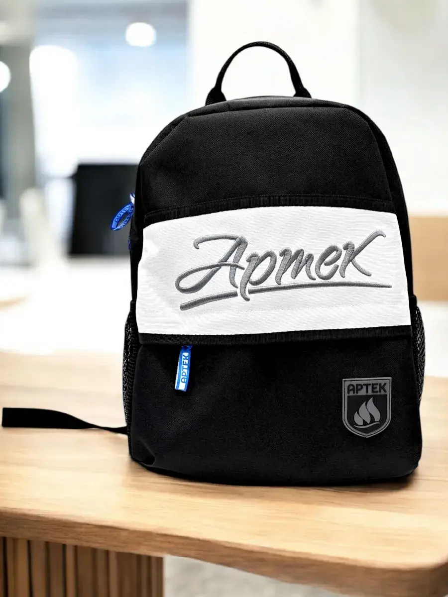 Рюкзак Артек — стильный и практичный аксессуар для повседневного использования. Выполнен из прочного материала, который обеспечивает долговечность и устойчивость к износу. Основной цвет рюкзака — черный, с контрастной белой вставкой, на которой вышита надпись «Артек». На передней части рюкзака расположен логотип «Артек» с изображением пламени, что подчеркивает его уникальный дизайн.